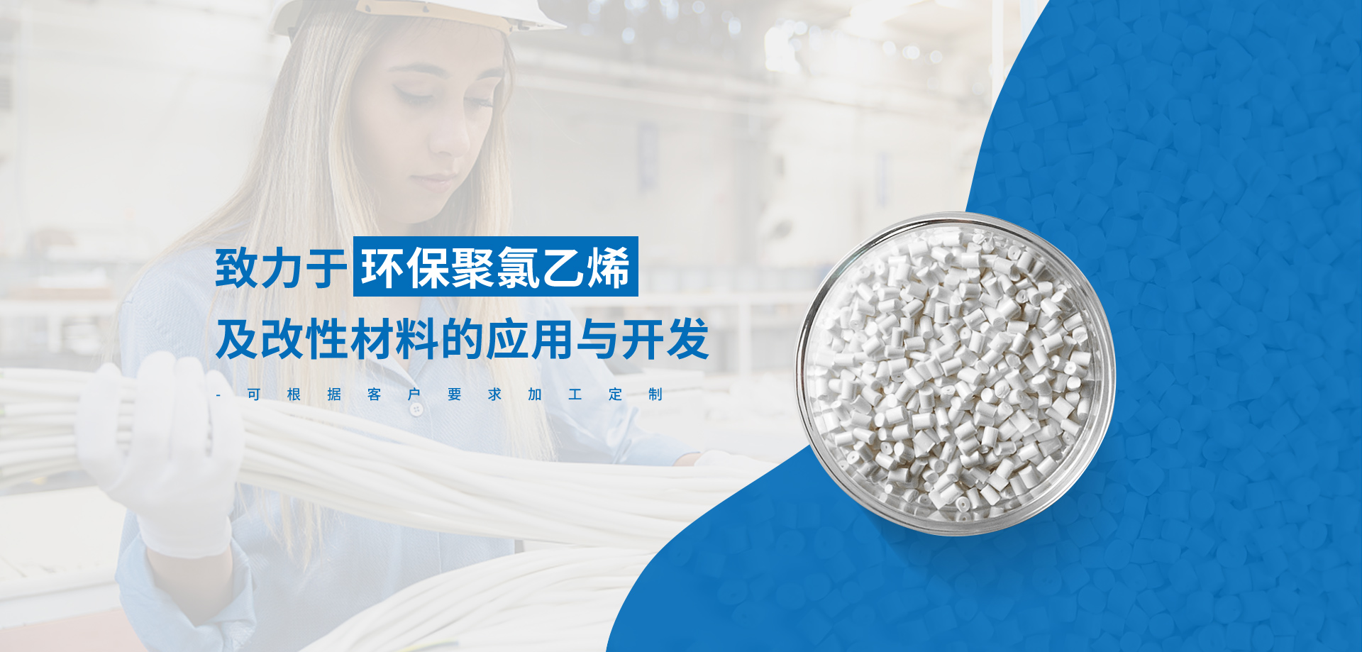 在高速發展的中國,我們專心致至致力于環保聚氯乙烯(PVC)及改性材料的應用與開發;產品應用 從電線電纜、通信電纜、高清數據線用各種電器配套線到各種玩具、容器密封件。我們專心的服務 精神和快速成長的研發生產能力,得到越來越多的客戶的認可與支持。